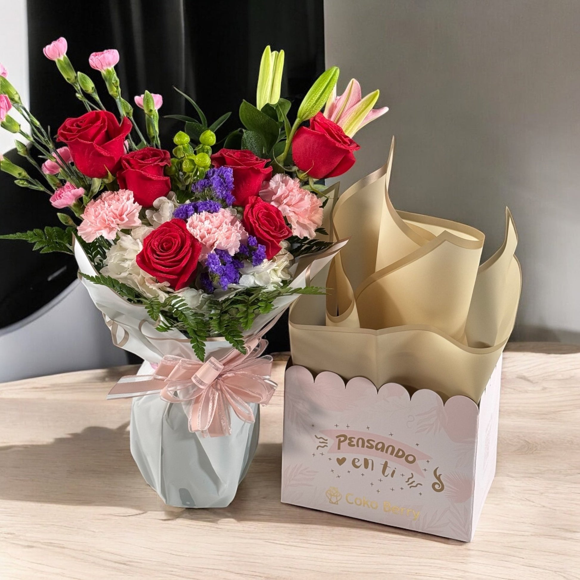 Introducing our collection of flowers boxes, carefully handcrafted delicately, with high attention to detail and with freshly cut natural long stem roses from Ecuador and flowers mix.